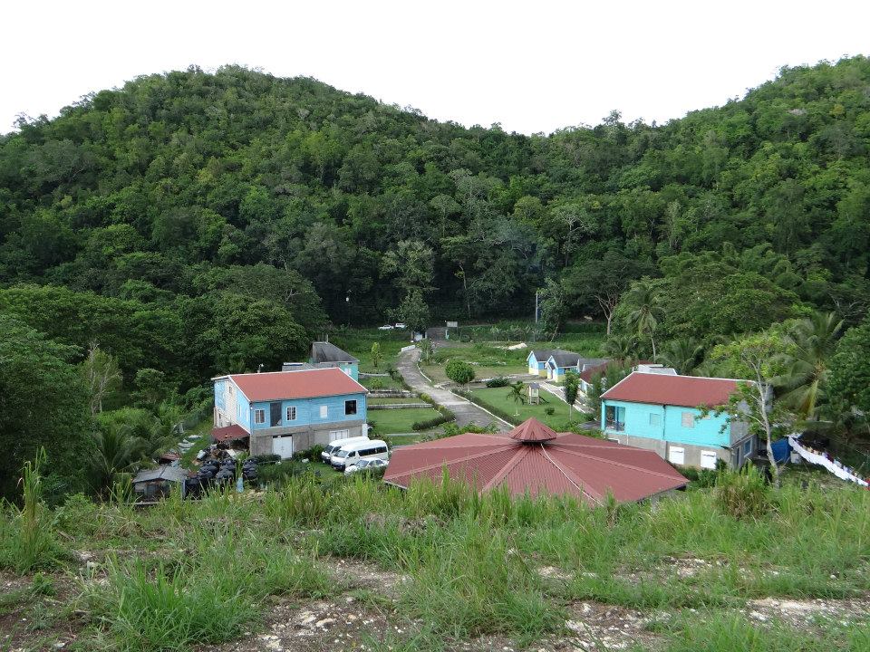 View from the orphanage gate to the coop high on the ridge.