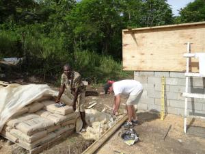 Setting the sill plate. Thanks to Junior for the lesson on Jamaican construction. No pole buildings here. Something about hard ground and hurricanes.