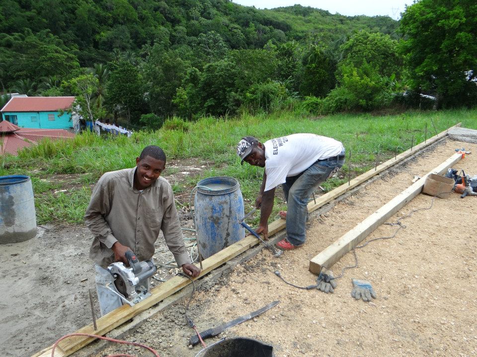 Setting the sill plate. Thanks to Junior for the lesson on Jamaican construction. No pole buildings here. Something about hard ground and hurricanes.