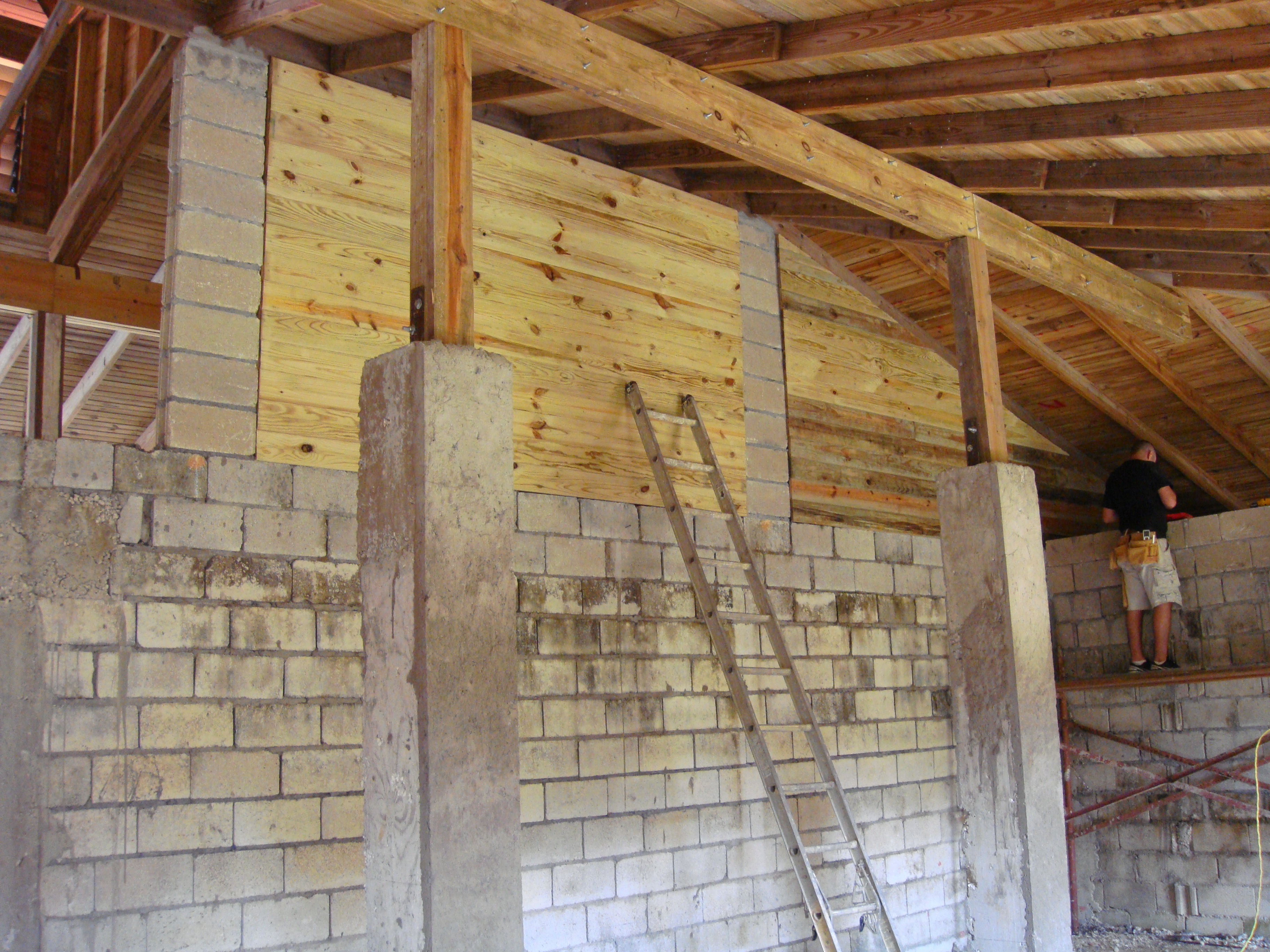 In 2009, JMP tackled the walls of the 5th cottage. The block was in place, but the siding to enclose each wall top had to be installed. This task was to take us three days. Instead, we finished early and were able to build a platform for a gravity-fed water tank that supplied water for the laundry facilities. In addition to these assignments, we were able to complete other general maintenance needs per Ms. Grant’s request.