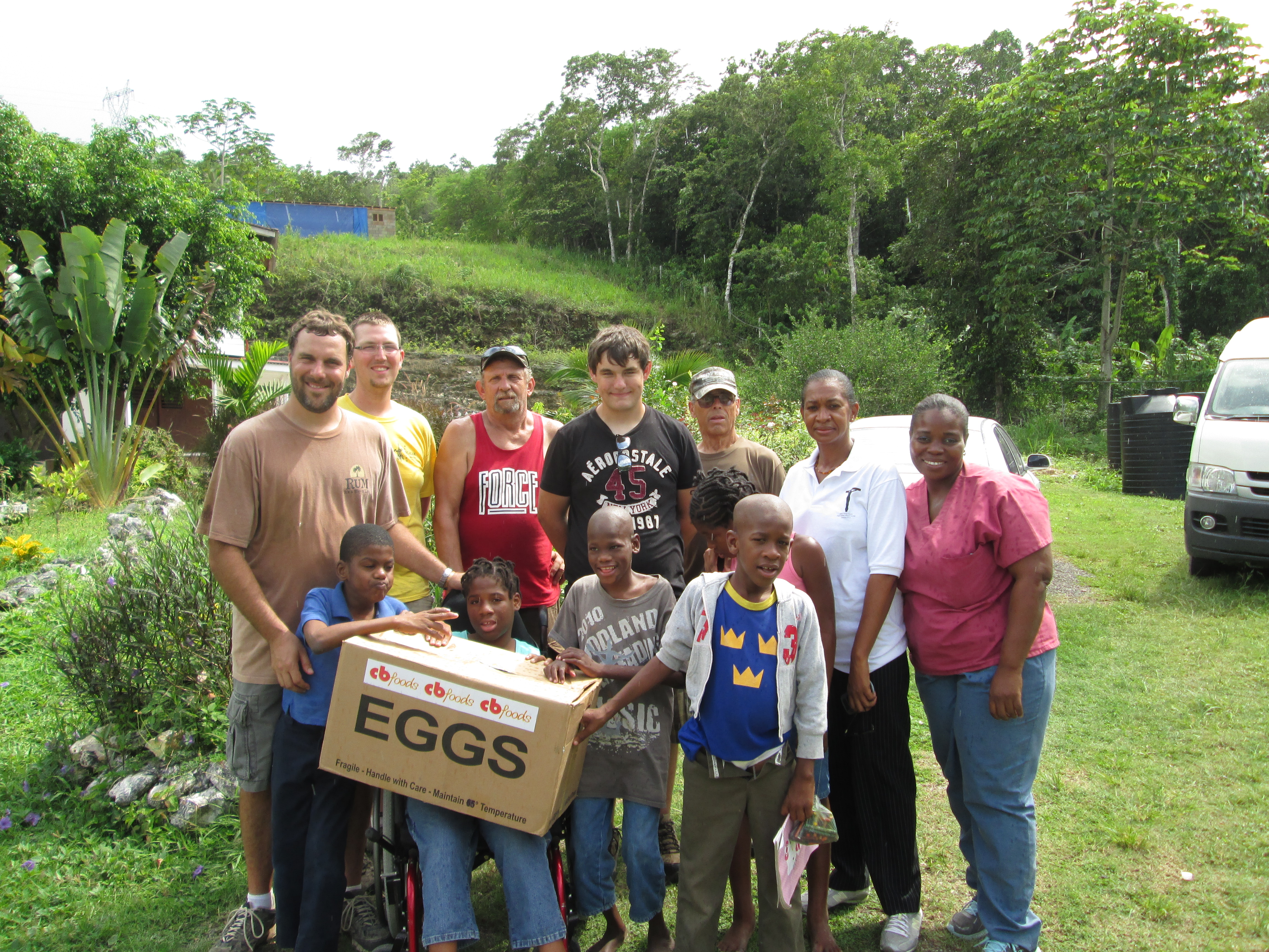 Even before the successful completion of the Westhaven coop, Jermaine was on the hunt for a new project. He was directed to Blessed Assurance Orphanage, again by staff at the Child Development Agency of Jamaica. Several board members of JMP had the opportunity to visit Blessed Assurance (located just outside of Montego Bay) and were very impressed by the director, Angella Graham, and the facility itself. Blessed Assurance, opened in 2007, is home to 35 residents with a wide range of physical and mental challenges including schizophrenia, autism, hydrocephalus and cerebral palsy among many others. This seemed like a perfect location to build another coop. After the initial build site was declined by the Ministry of Health, an alternative location was chosen. Although this build site presented many more challenges, JMP met them all.