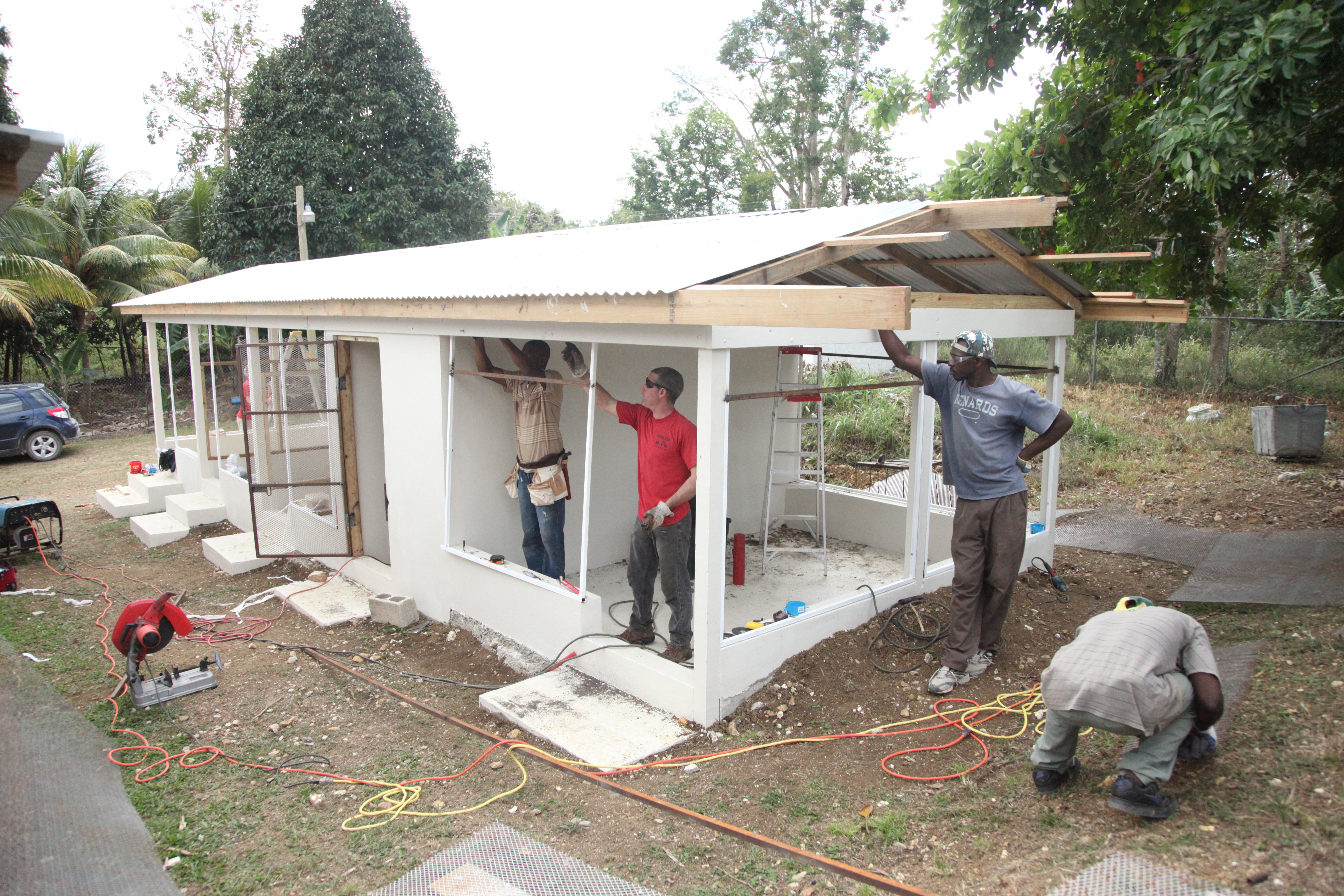 Despite a tropical storm delaying our work and planning one of most ambitious projects to date, we finished a large addition at Blessed Assurance and built a single room home. This addition at Blessed Assurance included a new bedroom, bathroom, and storage room to an existing cottage. This will allow the wonderful a place to stay in the event of sick children or weather obstacles. It was wonderful to provide a comfortable and safe location to support the dedicated staff. The concrete construction was funded by JMP and done prior to arrival. In 3 short days, we completed the tile work including the shower and bathroom. Installed the roofing trusses and zinc roofing. Installed windows and doors and painted the entire addition both inside and out.